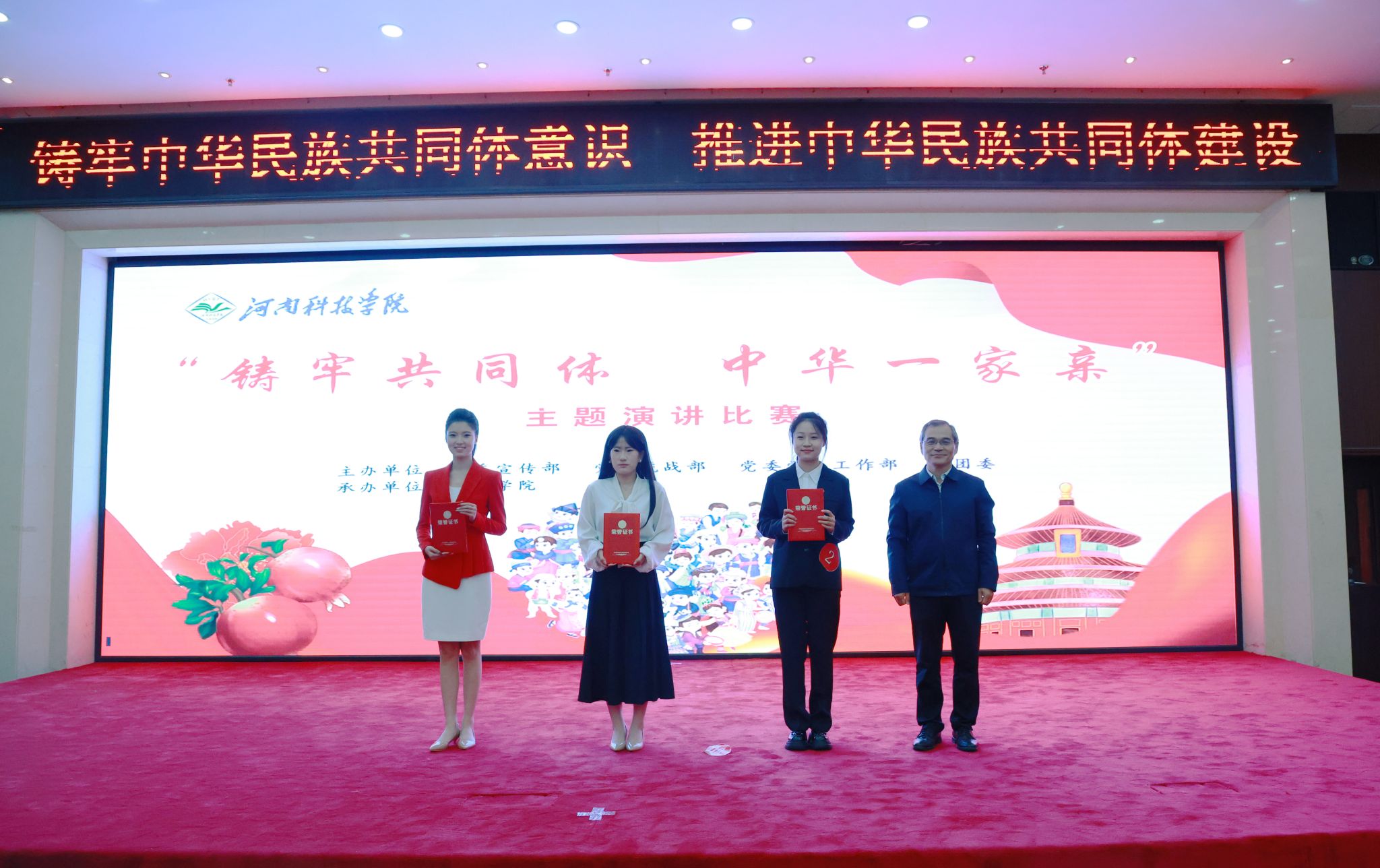 为喜迎新中国成立76周年,庆祝西藏自治区成立60周年、新疆维吾尔自治区成立70周年,深入学习习近平总书记关于加强和改进民族工作的重要思想,进一步铸牢中华民族共同体意识、推进中华民族共同体建设,9月29日下午,由党委宣传部、党委统战部、党委学生工作部、校团委主办,文法学院承办的河南科技学院“铸牢共同体 中华一家亲”主题演讲比赛在办公楼308举行。校党委副书记王庆兵出席并为获得一等奖的选手颁奖。