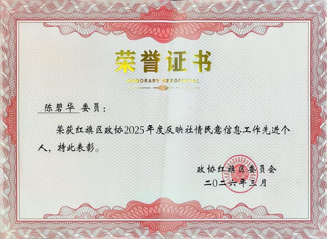 近日,我校收到政协新乡市红旗区委员会《关于通报2025年度履职优秀委员名单的决定》以及《关于表扬2025年度优秀社情民意信息和先进委员的通知》。红旗区政协常委、园艺园林学院陈碧华教授荣获优秀履职奖和反映社情民意信息工作先进个人称号,她撰写的社情民意信息《我国“五颗菜”安全生产监管有待进一步加强》被红旗区政协选用。
